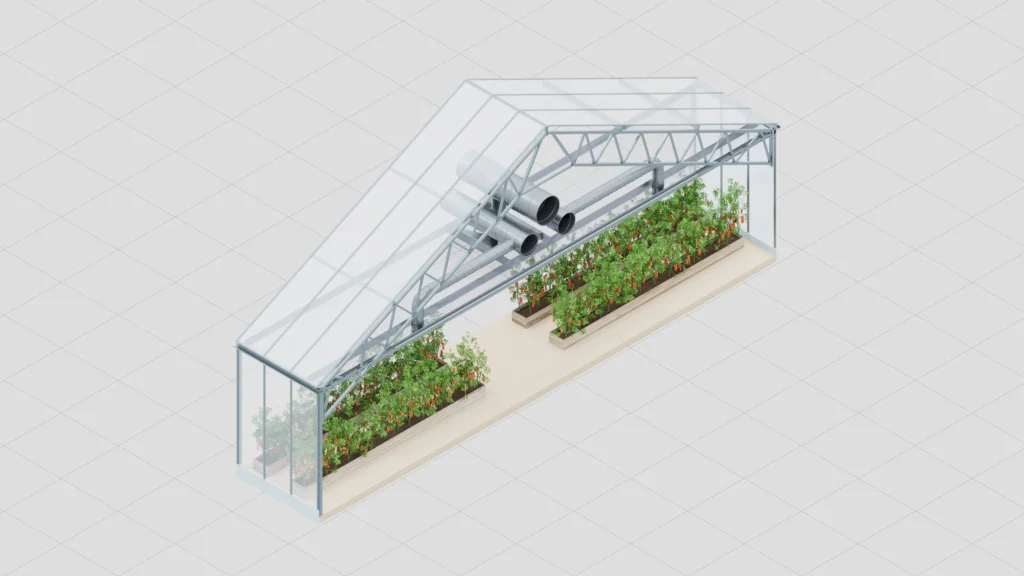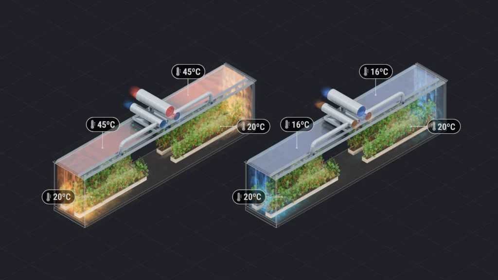 3D visualisering av Nexus4Climates teknik för klimatkontroll.